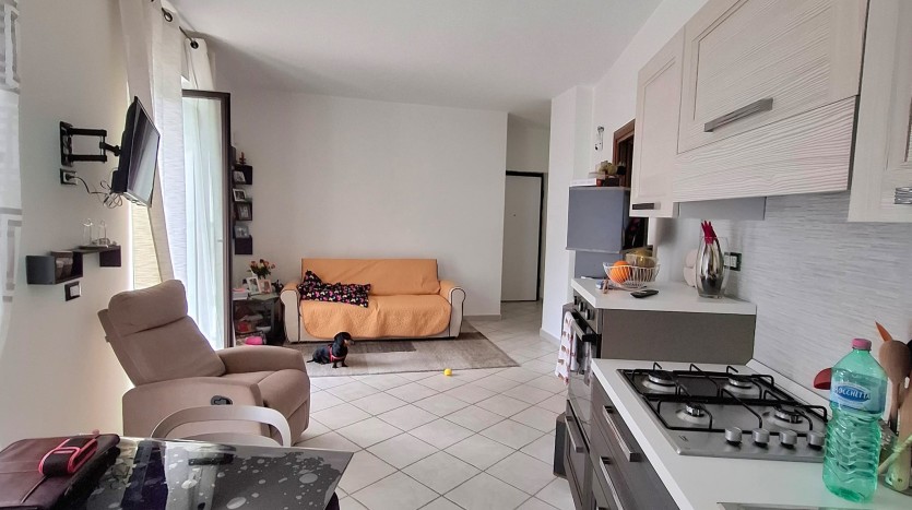 L’immobile di 70 mq ca. risulta essere così diviso: soggiorno con angolo cottura a vista, camera matrimoniale, cameretta, bagno ristrutturato; pertinenziale box auto collegato da scala interna.